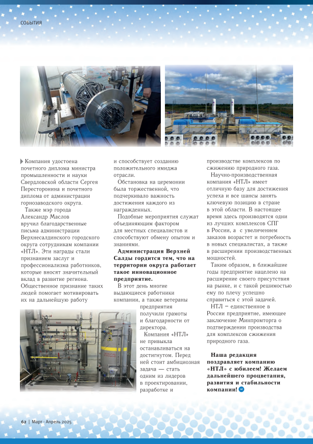 Юбилейная статья – это не только дань уважения истории компании, но и взгляд в будущее, наполненный оптимизмом и уверенностью в том, что НТЛ и дальше будет вносить значимый вклад в развитие газовой отрасли России.